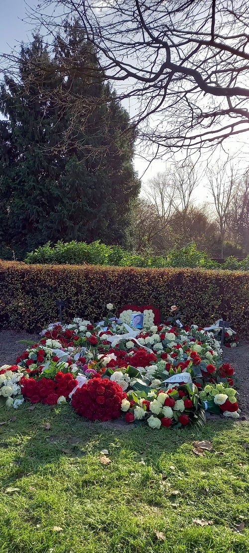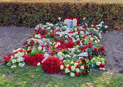 Net na de begrafenis een mooie bloemenzee natuurlijk, en later een foto terwijl het net gevroren had die nacht…
