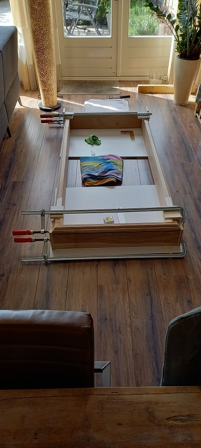 De houten lijst is van Eiken gemaakt, en dit heb ik samen met Berna gedaan. De keuze voor Eik was niet moeilijk, Eik staat voor doorzetten, kracht en moed.